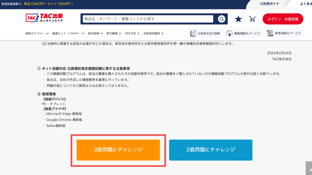2級の問題集を購入した場合は、2級も受験可能です。