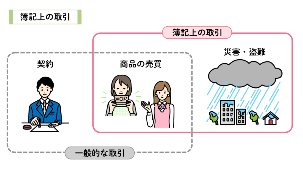 簿記上の取引は一般的な取引とは少し範囲が異なります。