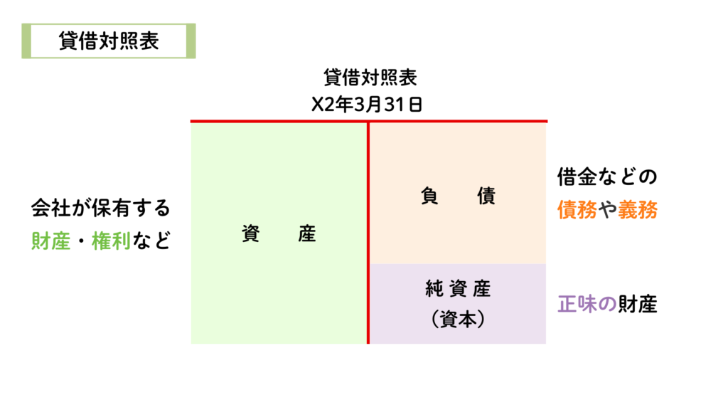 一定時点の財政状態を明らかにするための報告書を貸借対照表といいます。財務状態とは、現金や借金がいくらあるのかといったことを示します。