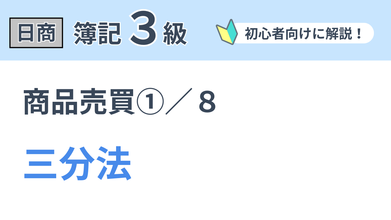日商簿記3級では、商品売買の記帳方法として三分法が出題されます。しっかりとポイントを押さえましょう。
