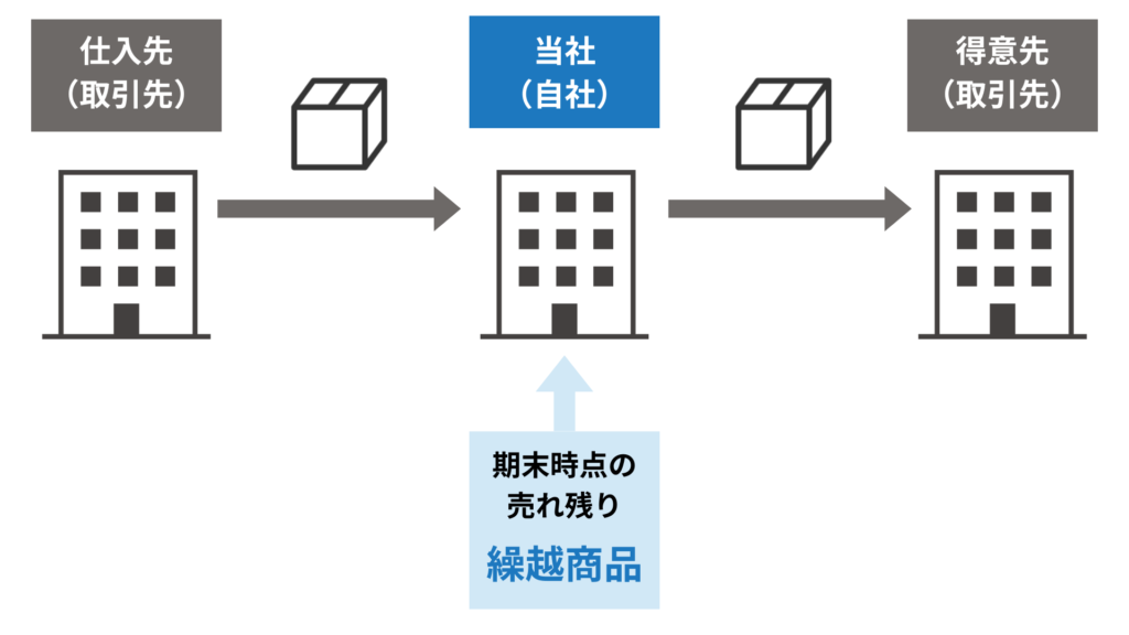 期末時点に在庫として残っている商品を、次の会計年度(次期)に繰り越す必要があります。