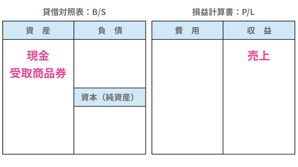 商品券を受け取った場合は、あとで商品代金を受け取る権利(債権)が生じたと考えます。