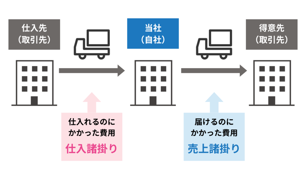 また、商品を仕入るときの費用を仕入諸掛り、商品を売り渡すときの費用を売上諸掛りといいます。
