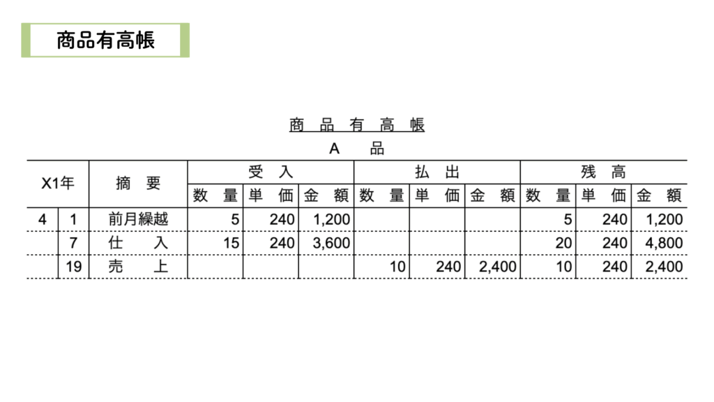 商品有高帳の記帳方法