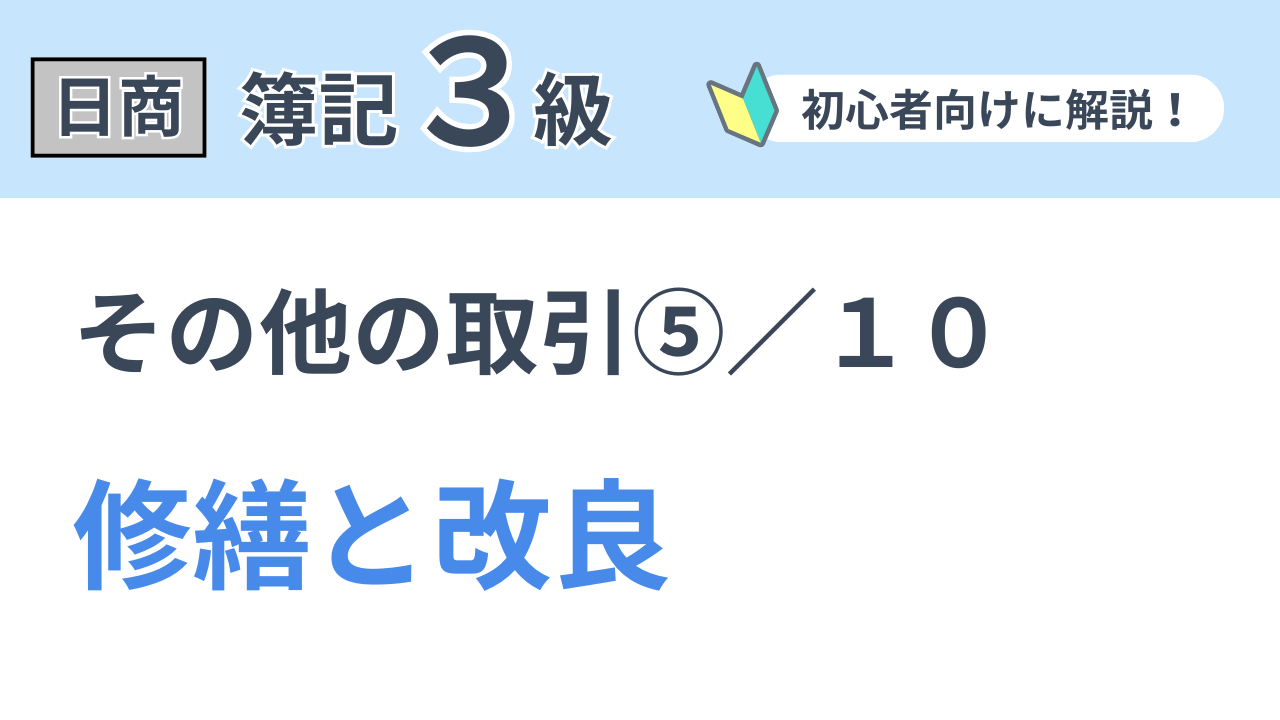 建物などの有形固定資産は、時が経過するにつれて劣化していくため修理や保守を必要とします。有形固定資産の原状回復(現状維持)をすることを修繕といい、その支出額は修繕費勘定(費用)を用いて処理します。