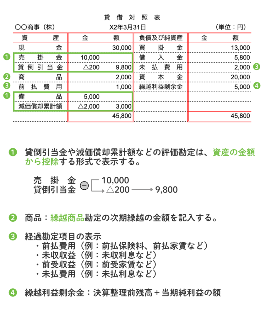 貸借対照表は、資産・負債・純資産の次期繰越高をもとに記入します。