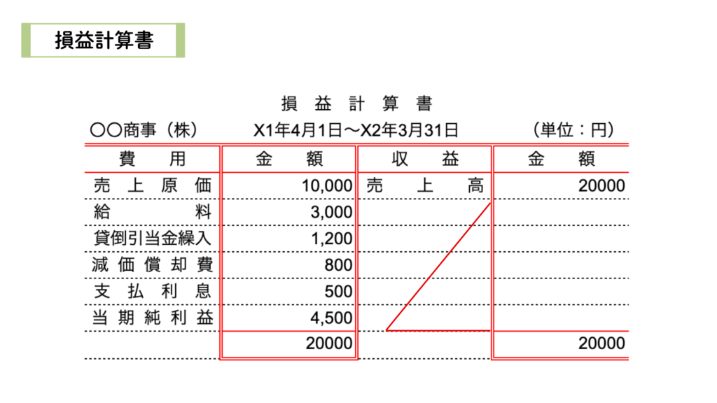 損益計算書(P/L:Profit and Loss Statement)は、一定期間における経営成績を示す財務諸表です。