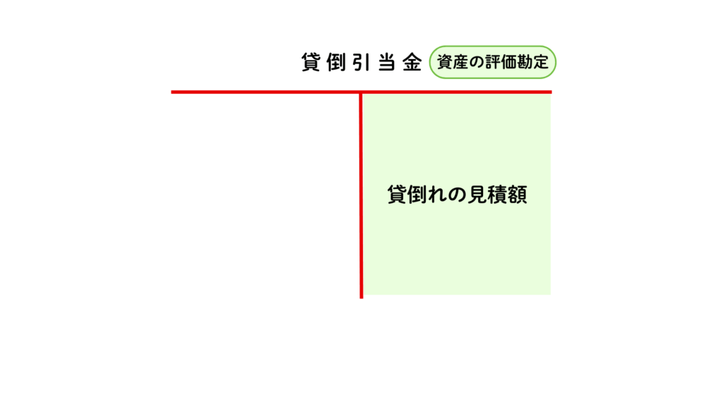 売掛金などの貸倒れが発生したときに、回収不能額よりも貸倒引当金の残高が多い場合は、貸倒引当金を取り崩して充当するため、借方に貸倒引当金(資産の評価勘定)勘定を記入します。