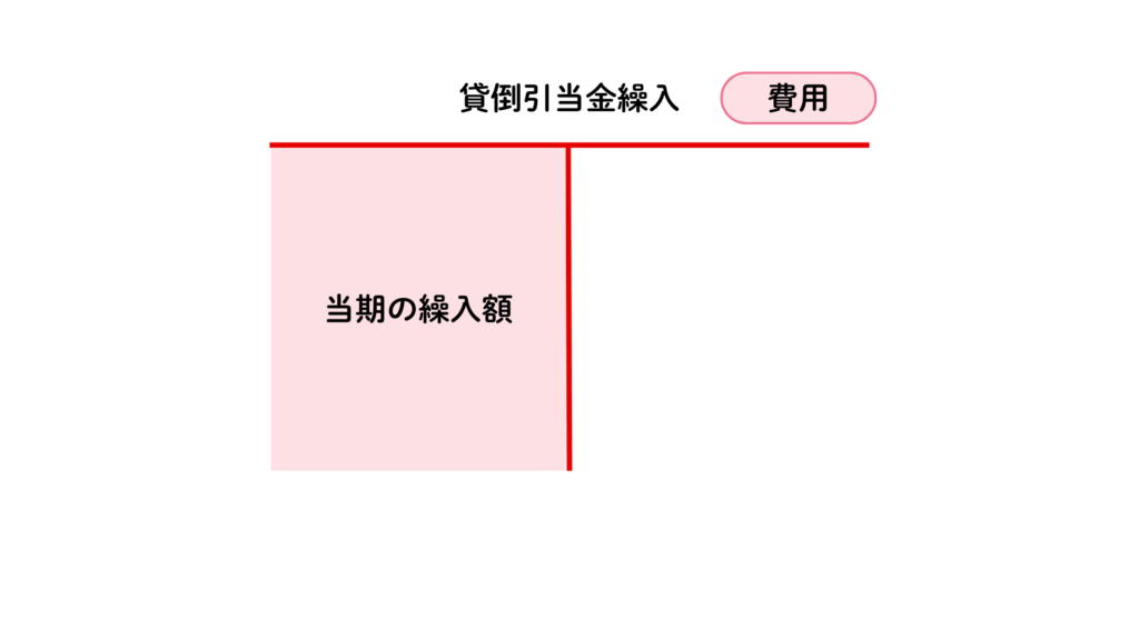 また、借方には貸倒引当金繰入(費用)勘定を記入します。